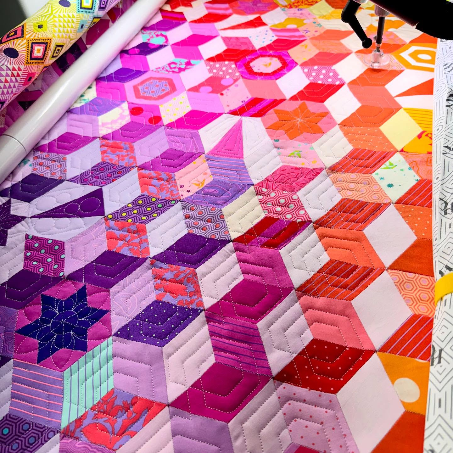My goal as a quilter is to make the quilting look custom by the way we carefully select the quilting design to match your quilt top.