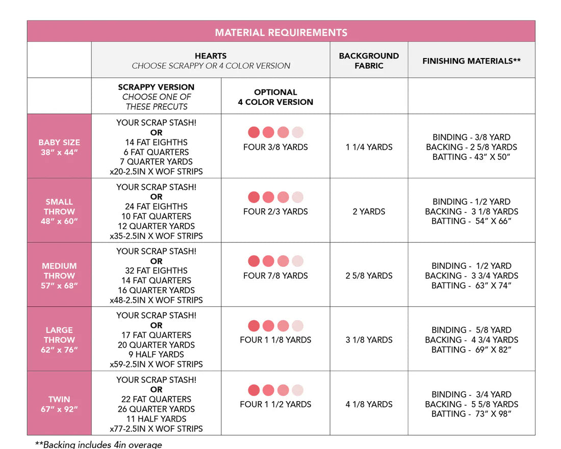 This sweet and simple heart quilt is scrap, stash and precut friendly. Perfect baby quilt or Valentine's quilt. Infinite Hearts includes five quilt sizes, baby to twin.