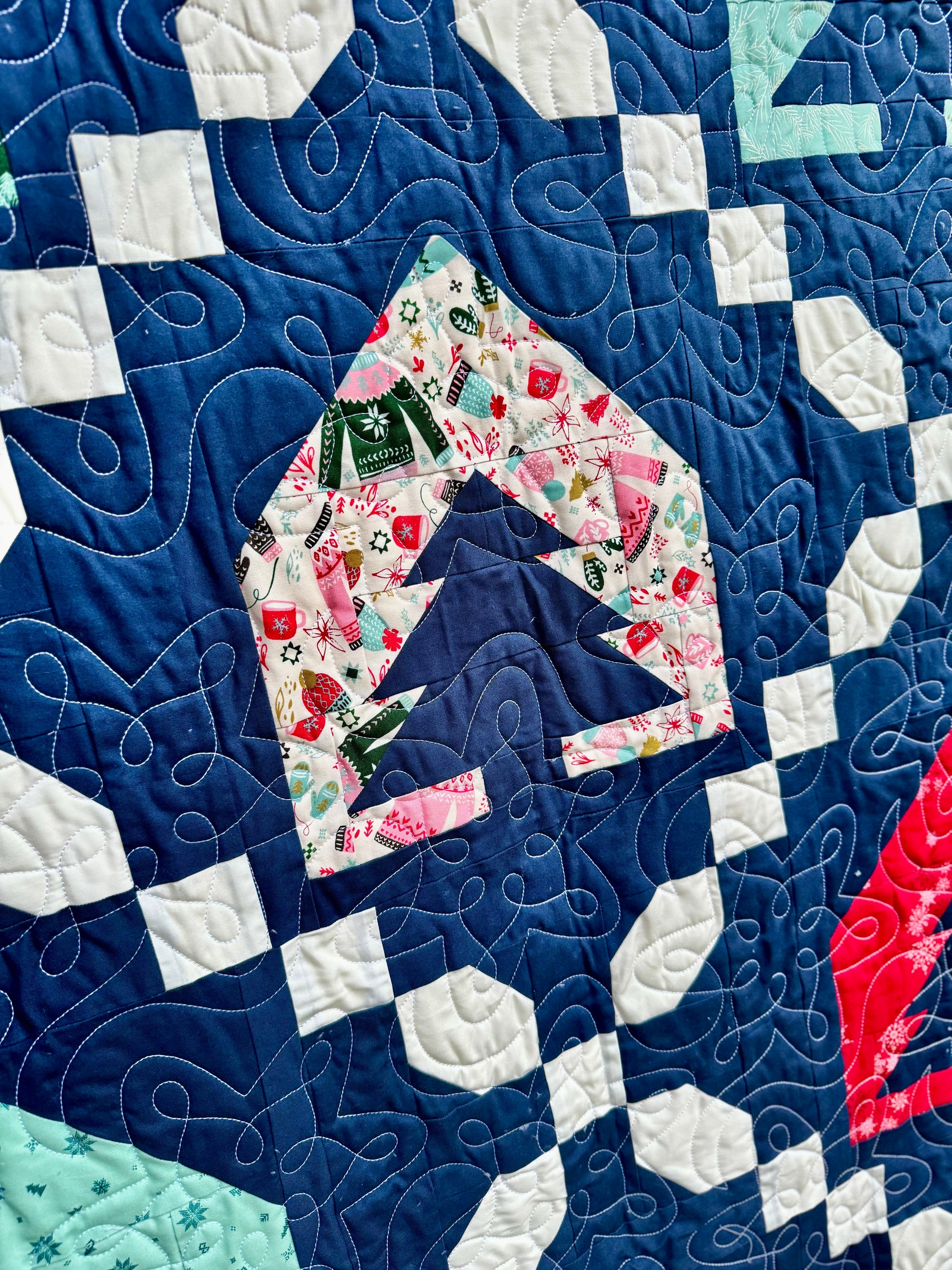 Completed throw size Christmas quilt with Minky backing